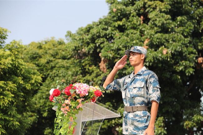 廉江市委常委、人民武装部政委、军训旅旅长殷毅上校讲话,他指出,军训是新时代大学生入校第一课,是开学前的考验,也是人生经历的一笔宝贵财富,是接受国防教育、组织纪律和艰苦挫折教育的基本形式,希望参训的广大同学:一是要敢于吃苦,敢于锻炼。二是要服从命令、听从指挥。三是要通过军训真正达到好思想好作风好纪律,培养军人气质、军人气概,终成刚毅、顽强、无所畏惧的新时代人才,与教官、老师一起圆满完成这次军训的任务。