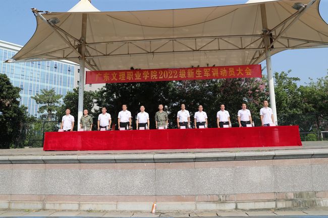 在嘹亮的《中国人民解放军军歌》中,广东文理职业学院2022级学生军训开训动员大会落下帷幕,共同开启为期两周的军训生活新篇章。