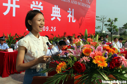 副院长龙成和主持开学典礼:“请全体起立,奏国歌!”