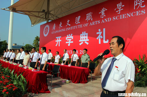 2013级开学典礼在激昂而振奋的《广东文理职业学院校歌》歌声中圆满完成全部议程。