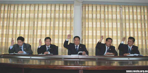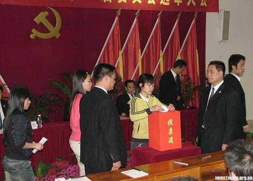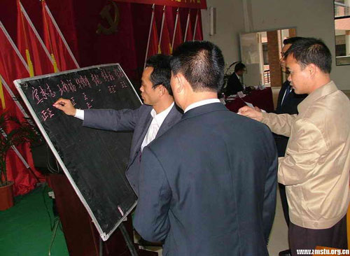 大会在雄壮的国歌声中拉开序幕。我院党委根据湛直党工委发[2008]21号文批复和选举的有关规定,按照程序,会议审议通过了中共湛江现代科技职业学院委员会第一次代表大会选举办法、党委委员候选人建议名单、大会选举工作人员名单、大会筹备工作报告。采取无记名投票和差额选举办法,宣承志、王南福、张万新、宣承柱、毕德勇等五位同志当选为第一届党委会委员。