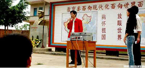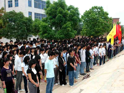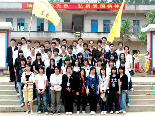 在团委书记吴为、组织委员孙艳梅、青工委员赵雅琴的带领下,湛科院青年志愿者及团委会、学生会、社联会学生干部等300余人,高举鲜艳的团旗,步行近一个小时来到了黄平民烈士学校。