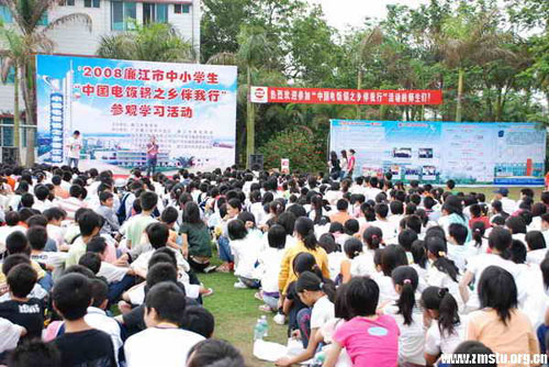 上午,湛江现代科技职业学院湖边广场上人头攒动,热闹非凡。全市部分中小学生齐集这里参加了旨在认知廉江、了解家乡风情的“中国电饭锅之乡伴我行”活动。