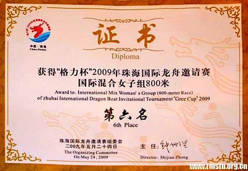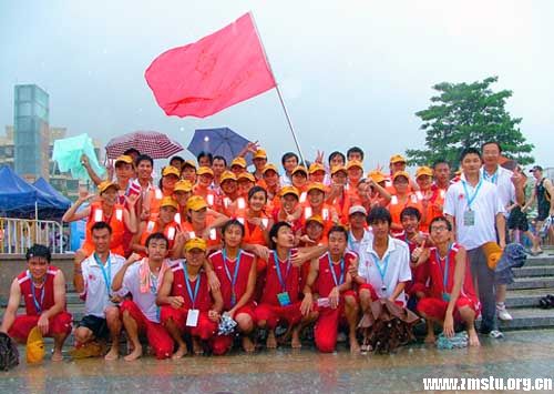 上午,23支龙舟劲旅、500多名体育健儿汇聚在珠江口西岸的前山河畔,2009年珠海国际龙舟邀请赛在狂风暴雨中擂响战鼓。经过近三个小时的激烈角逐,我院女子龙舟队以3分31秒55夺得国际混合女子组第六;我院男子龙舟队以3分12秒03夺得国际混合男子组第九名。