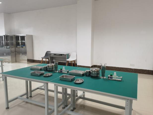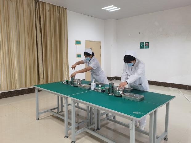 无菌技术实训室是面向护理、助产专业学生的实践教学平台,主要承担《基础护理学》、《外科护理学》等课程的教学实训任务。本实训室以培养学生无菌技术操作能力、培养无菌观念、建立临床无菌技术思维为主要目的,通过营造仿真教学环境,提高学生的操作技能水平。无菌技术实训室共有10套无菌技术操作器械,8个感应洗手设备,可容纳60余人同时进行实训实操。