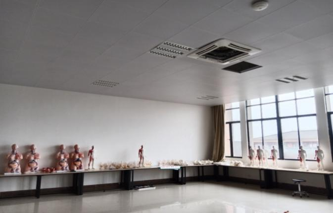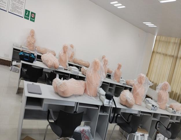 护理评估实训室占地约200平方米,配备简单的《护理评估学》、《诊断学》等课程实训设备。如学生机电脑、胸部腹部模拟人控制器、教师电脑以及仿真模拟人等。