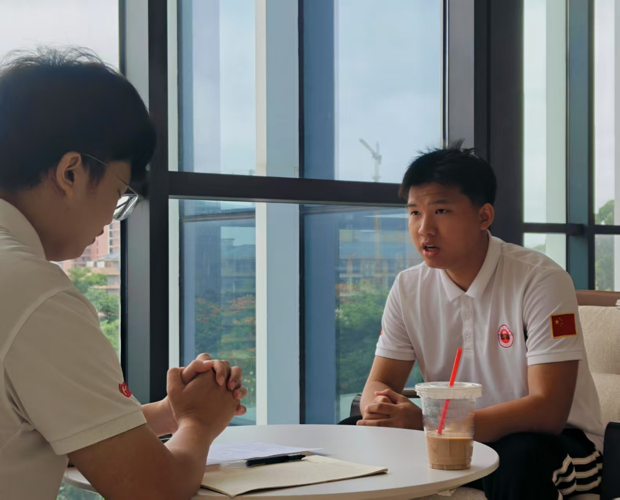 (配图:接受采访中的黄庭康同学;图片来源:摄影/曹雯凤)