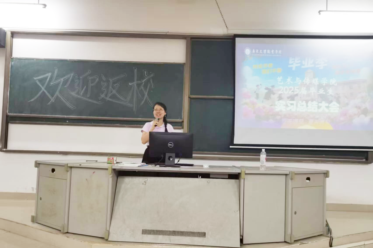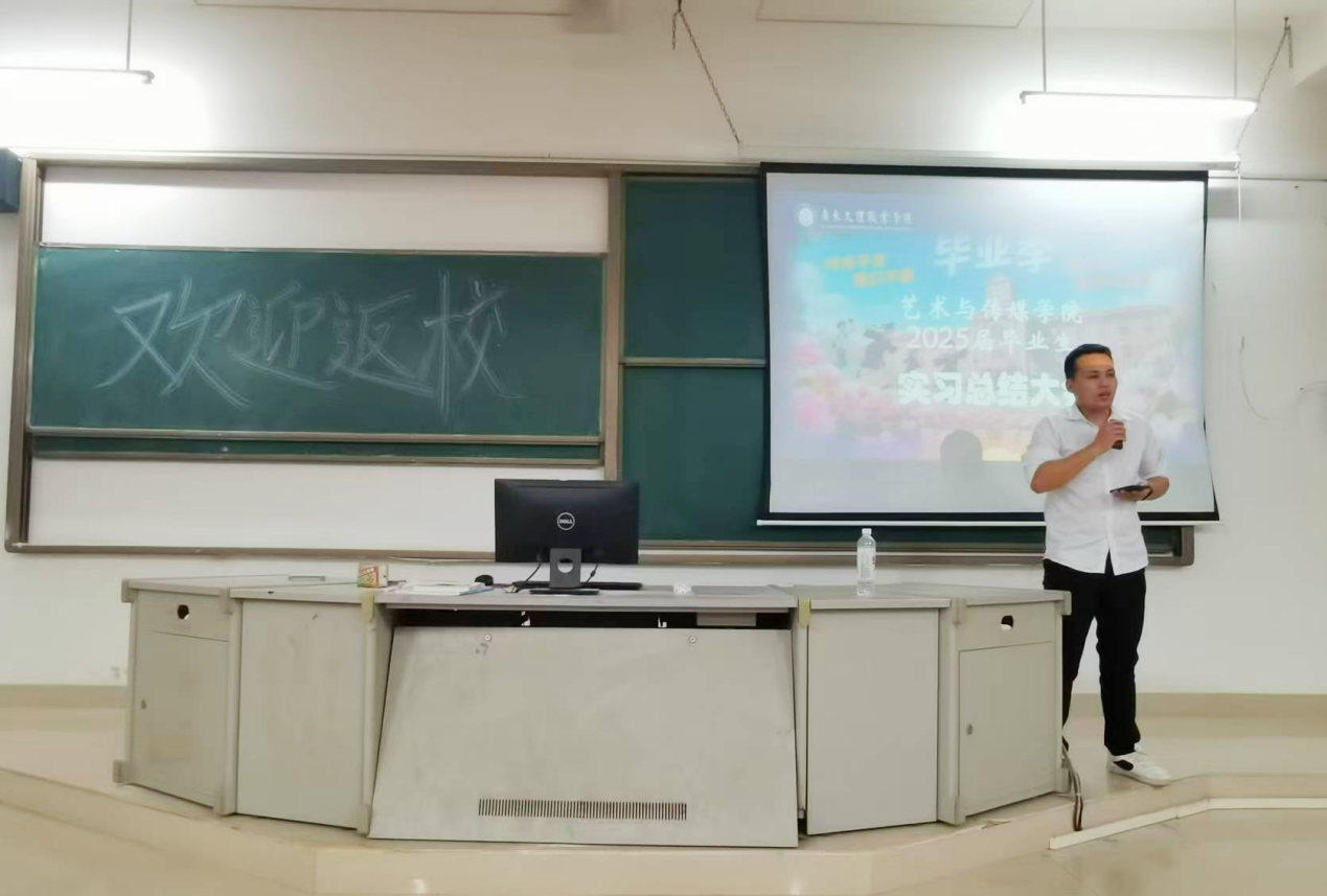 6月19日晚,艺术与传媒学院在第一教学楼A405隆重召开2025届毕业生实习总结大会。会议由谢京谕老师主持,汪俊林院长、朱兴财助理、毕业实习指导教师、辅导员及全体毕业生参会,共同回顾实习成果,总结实践经验。