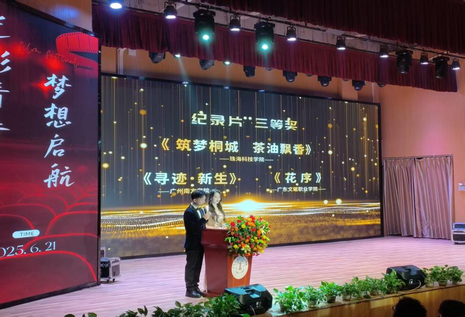 2025年6月21日,由我院张金玲老师指导,影视编导专业2022级学生陈晓敏、梁成秀、黄吉华、郑智豪联合创作的纪录片《花序》荣获首届广东民办高校大学生电影节纪录片单元三等奖。