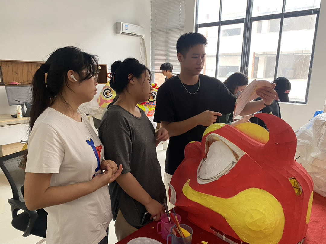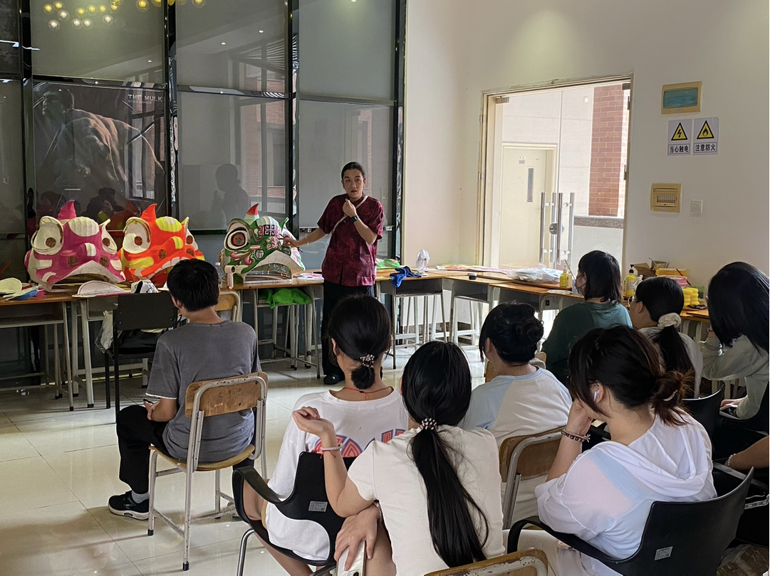 2025年7月3日,随着本学期的结束,艺术与传媒学院“数字化非遗文化工作坊”的各项教学与实践任务也正式落下帷幕。当天,工作坊作品顺利完成,非遗醒狮传承人童娇华师傅亲自前来查看并收取了同学们的创作成果,对作品的整体质量和创意表现给予了高度评价,表示非常满意。