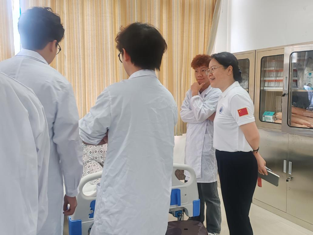 薛副校长一行先后到注射实训室、解剖及心肺复苏实训室、口腔医学技术实训室实地调研,与相关专业教师交流,了解实训教学情况,并现场提出了相应的指导与建议。调研中还就实训室建设、如何提升实训教学质量等议题进行了深入交流与探讨。