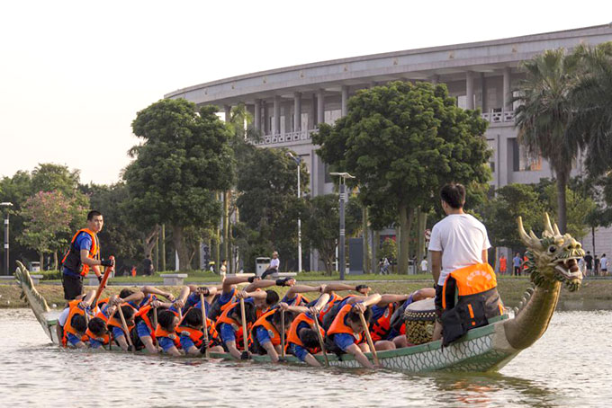 坚韧,默契,爆发!这是训练带给龙舟队队员的收获。要想龙舟划得快,首先体力要跟上。日常训练内容:平板支撑、鳄鱼爬、鸭子步、仰卧起腿、兔子跳、蛙跳……在龙舟队的训练中能够真正的领悟到了同甘共苦的含义,乐就同乐,有苦一起熬!龙舟队员在大学里最难忘的时光必有在龙舟队训练的日子。