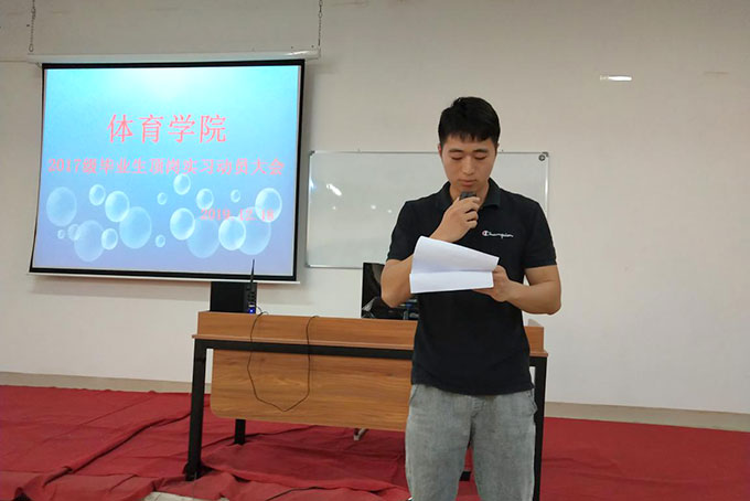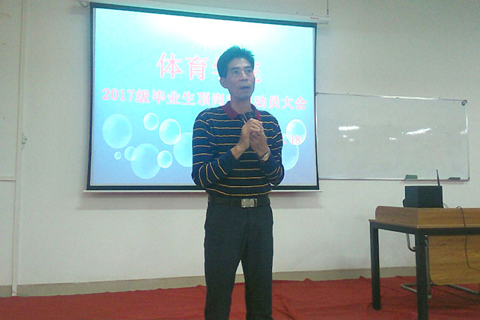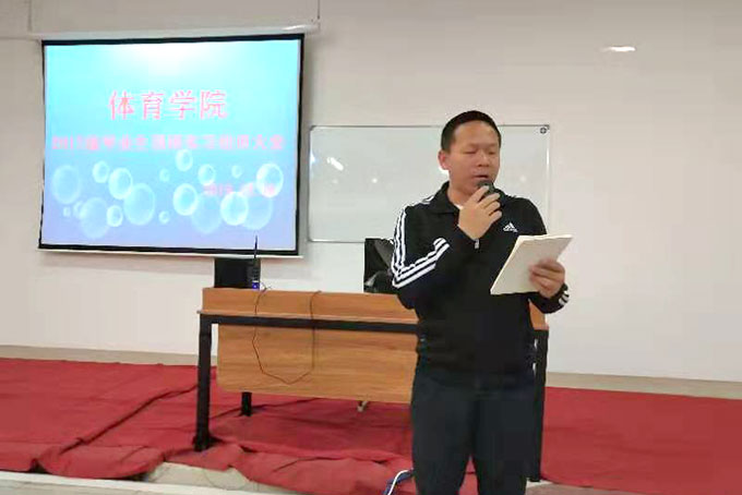 2019年12月18日,体育学院在教学楼A304召开了2017级学生顶岗实习动员会。体育学院副院长区亦谦、副院长余小燕、体育学院部分教师、各班级辅导员和体育学院17级全体学生参加动员会。