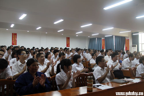 中华民族素有“尊师重教”的优良传统,教师是太阳下最光辉的职业,肩负着开启明智、传承文明的神圣使命。全体教职员工要团结一致,凝心聚力,以良好的精神风貌,积极进取的工作态度,不断推进师资队伍建设,学风、校风建设。希望全体教师通过提高业务能力,增强学院办学实力。在今后的工作中,我们还要坚定理想信念,培养高尚情操,弘扬新风正气。全体教师要树立办学“以师为本”,教学“以生为本”的教育理念,营建一支热爱学校、富有生机活力的队伍,携手共进,推动学院各项事业的发展,为学院的美好明天而共同努力,为实现中华民族伟大复兴的“中国梦”做出自己的贡献。
