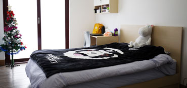 03星级公寓四人套间(上铺下桌):有电梯,两房一厅,两人一房,每房配备:大1匹空调,电脑台,电脑凳,书架,衣柜,电冰箱,洗衣机,饮水机,餐桌,餐凳,洗手台,花洒,仪容镜,1.2米床,床垫,马桶。预 订