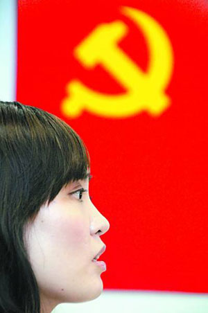 7月1日,张丽莉在哈医大一院宣誓加入中国共产党。新华社记者 王凯摄