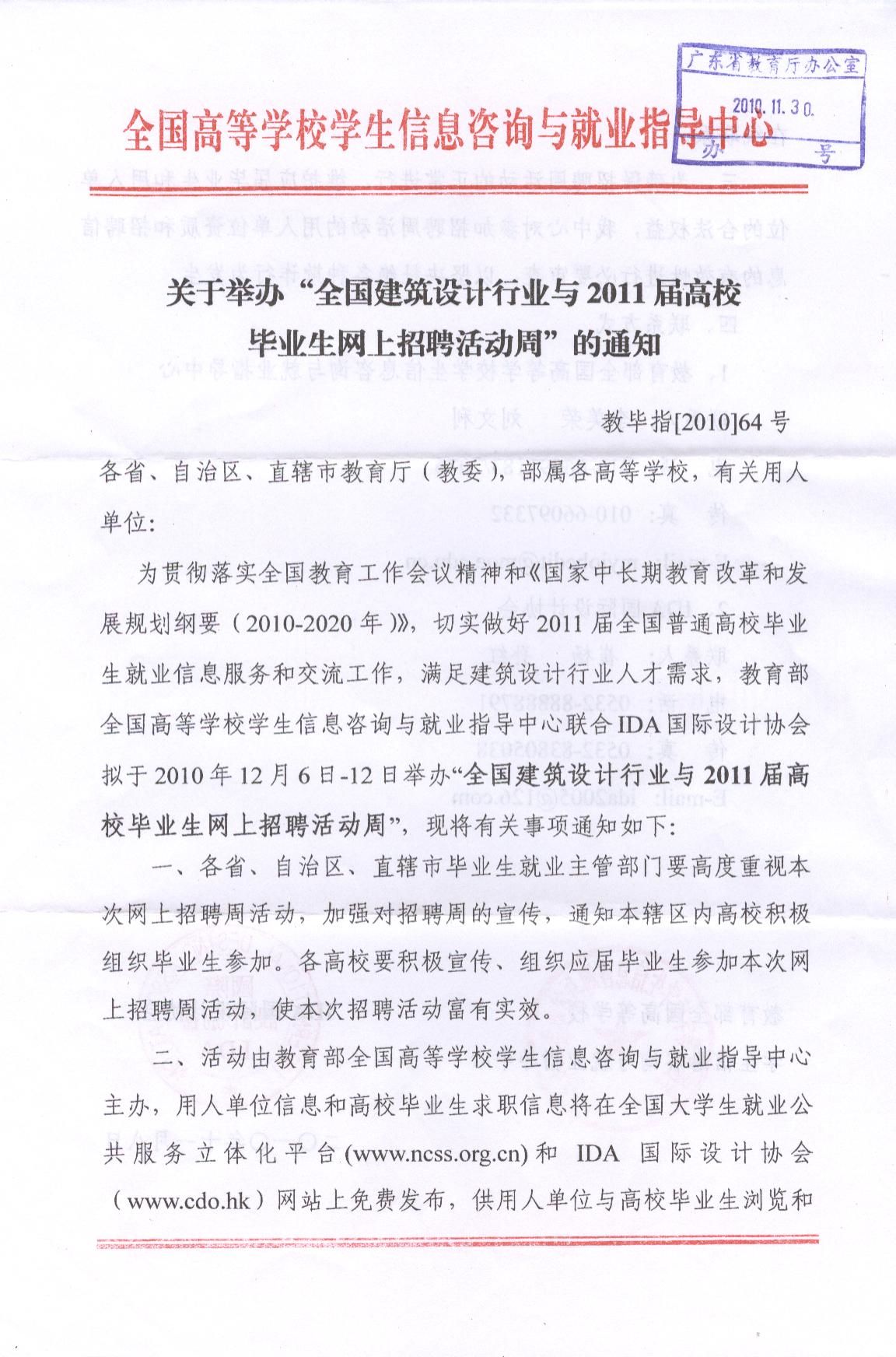 关于举办“全国建设设计行业与2011届高校毕业生网上招聘活动周”的通知