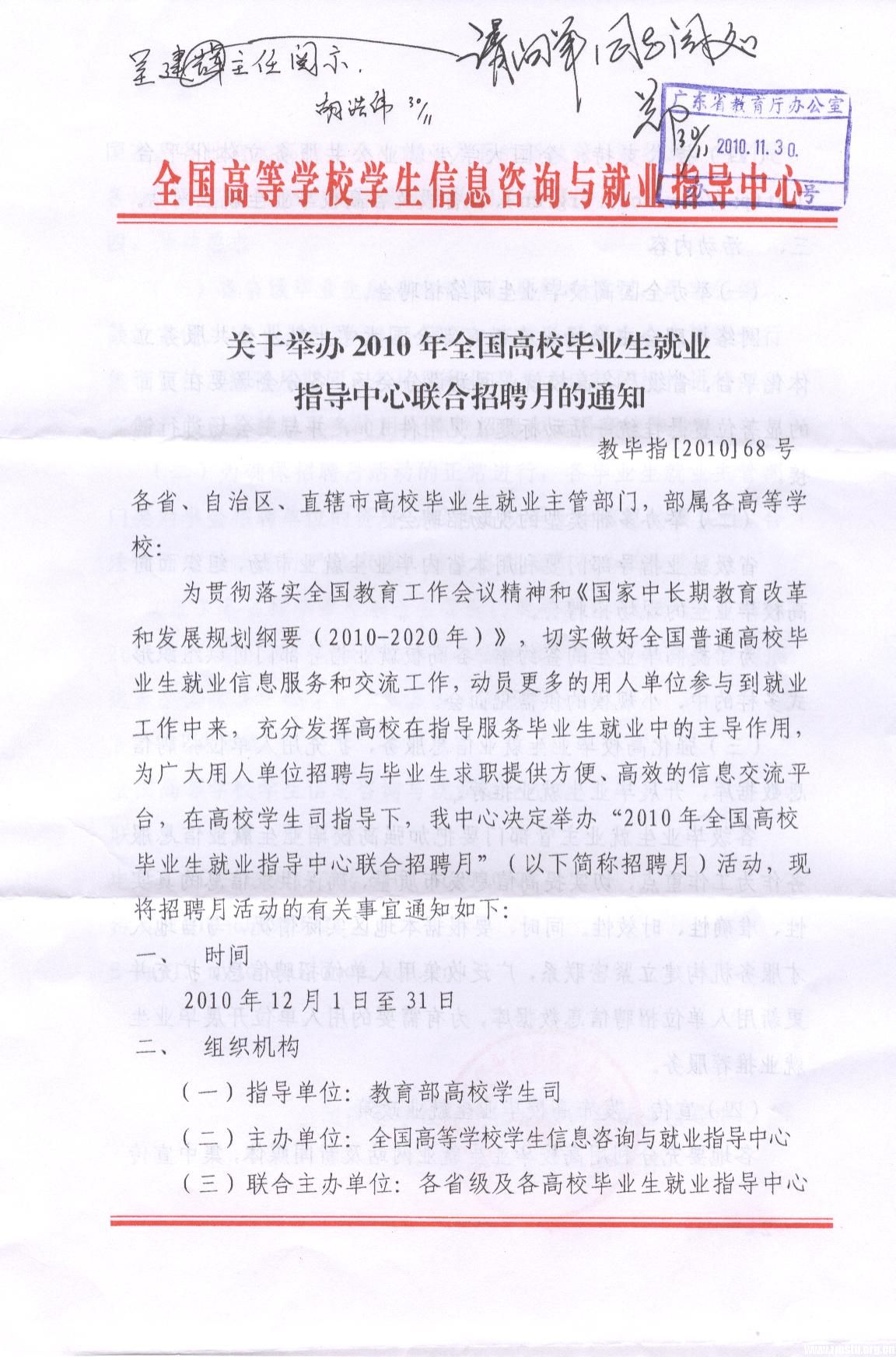 关于举办2010年全国高校毕业生就业指导中心联合招聘月的通知
