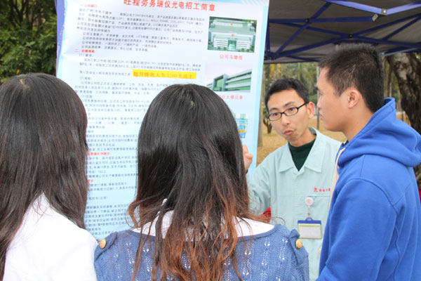 2011年12月21号下午我院在餐饮中心前的广场举办了大型校园招聘会。共有20多家企业到场招聘,共提供了1000多个工作岗位。