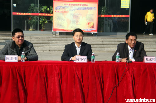 领导讲话结束后,学院招生就业指导中心主任詹德贤宣布大学生与企业招聘洽谈开始。