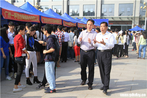 广州市萝岗区人社局劳动就业服务管理中心主任王佐宁,广东文理职业学院党委副书记、副院长王南福亲临招聘现场巡视