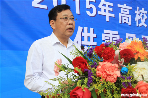 领导讲话结束后,广东文理职业学院党委副书记、副院长王南福宣布2015年高校毕业生供需见面会开幕。