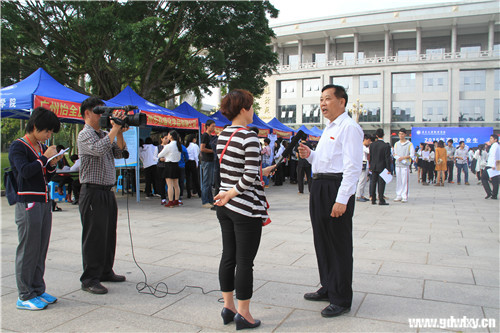廉江电视台对广东文理职业学院2015年高校毕业生供需见面会做了现场报道,学院党委副书记、副院长王南福接受了记者采访。